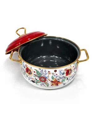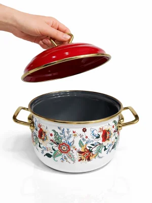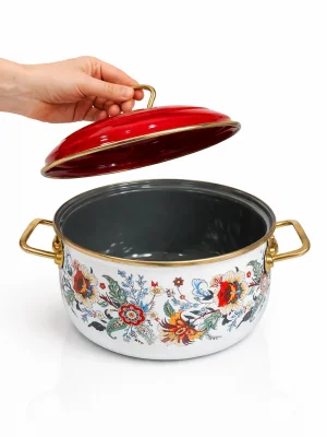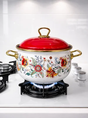 Koleksiyonda yer alan desenli emaye tencere modelleri, PR Home’un tasarım gücünü yansıtan zarif detaylarla dikkat çeker. Canlı renkler, floral desenler ve retro çizgiler, klasik bombeli forma farklı bir hava katar. Bu ürünler yalnızca yemek pişirmek için değil, aynı zamanda sofrada şık bir sunum yapmak için de tercih edilebilir.