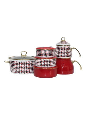 PR Home Forte Red Çeyiz Seti Çaydanlık - Kızartma Tenceresi - Saklama Kabı