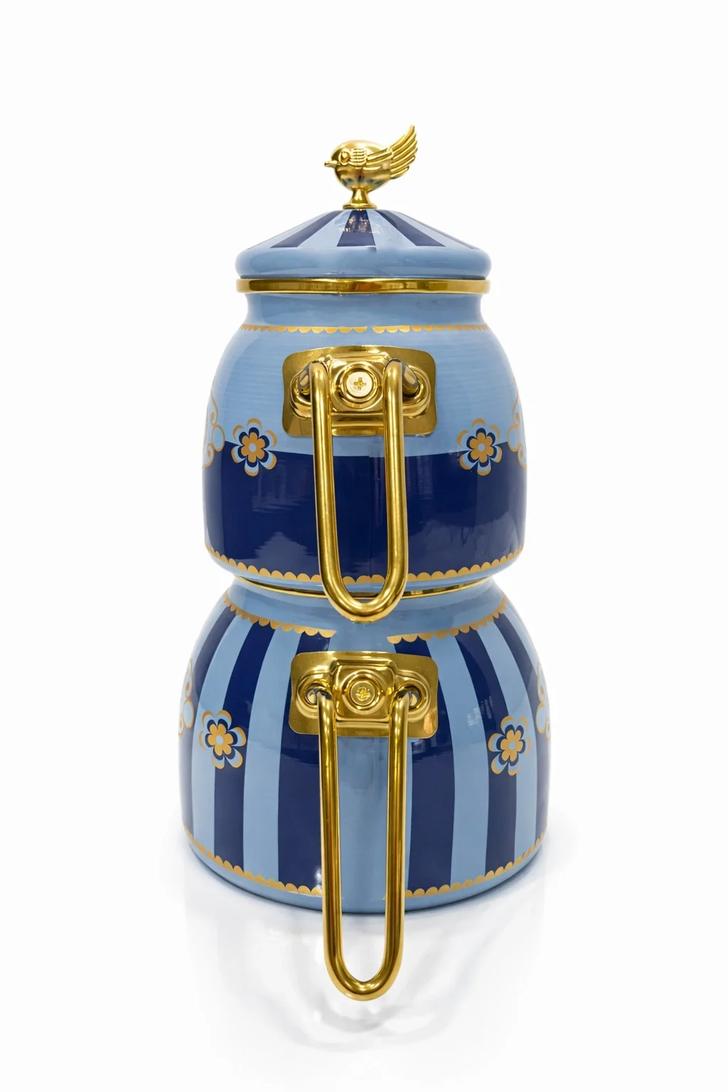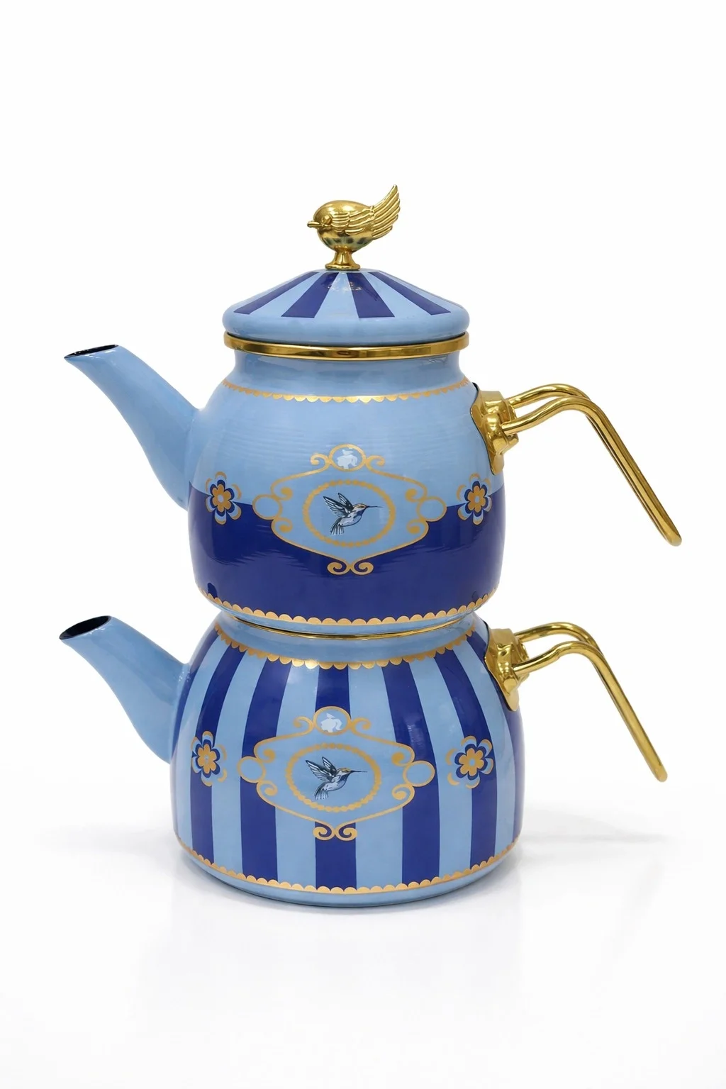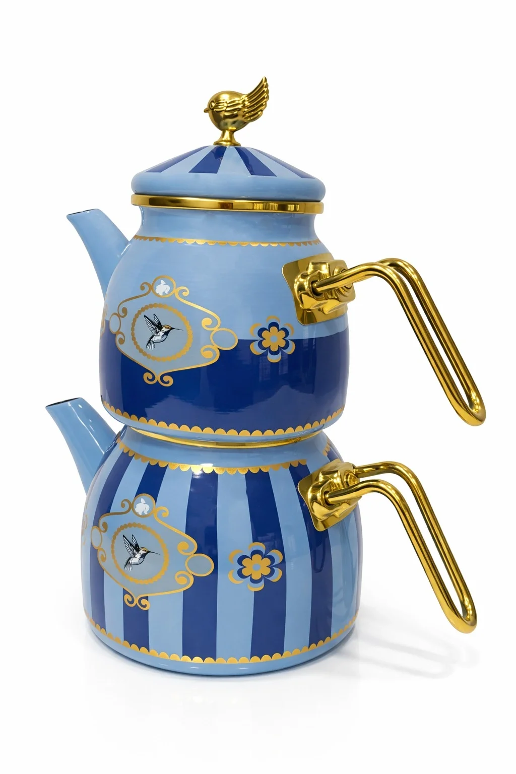 Set İçeriği: Dekorlu Çaydanlık Alt 1 Adet, Dekorlu Çaydanlık Üst 1 Adet, Dekorlu Tepeli Emaye Çaydanlık Kapağı 1 Adet.