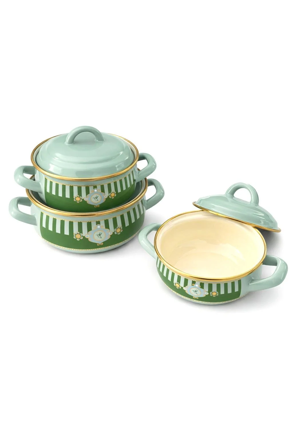 * PR Home Alaria Yeşil Mini Emaye Tencere Seti, emaye yapısı, dayanıklılığı ve modern tasarımıyla sağlıklı ve güvenli bir kullanım sağlar.