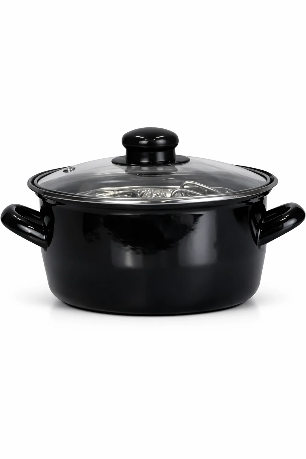 PR Home Emaye Cam Kapaklı Kızartma Tenceresi 20 cm Siyah