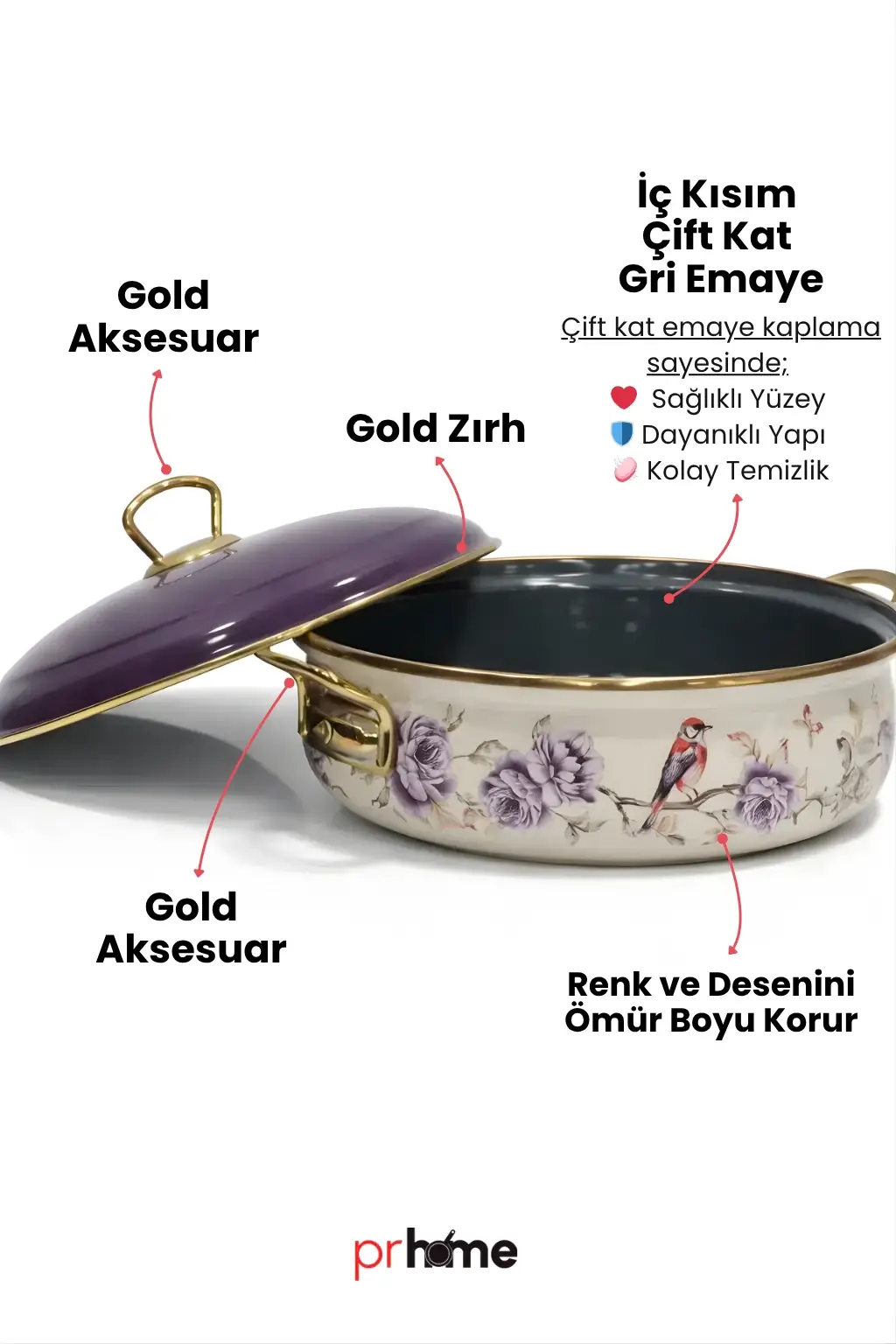 PR Home Fiorella Derin Bombeli Emaye Karnıyarık Pilav Tenceresi 26 cm