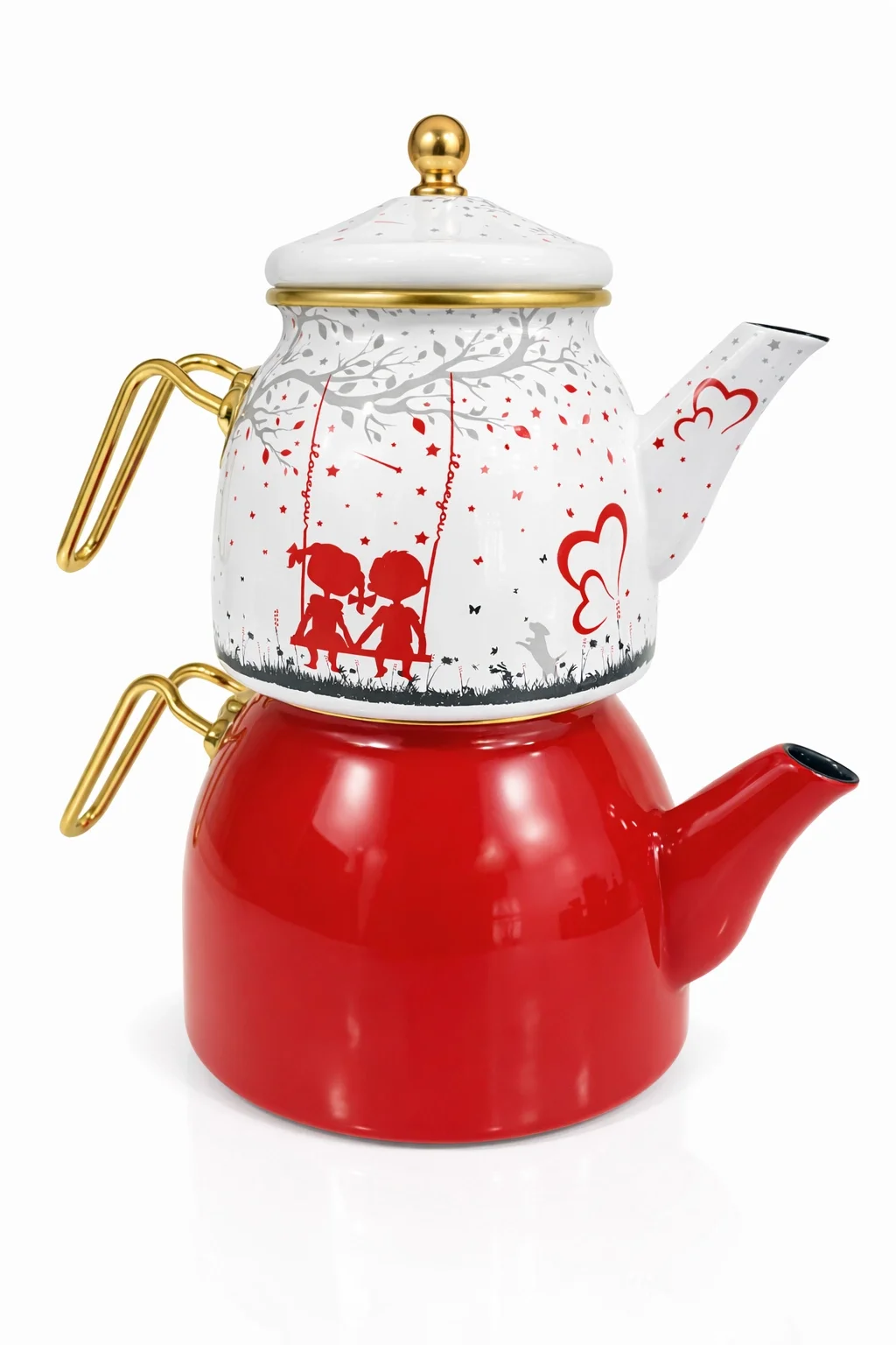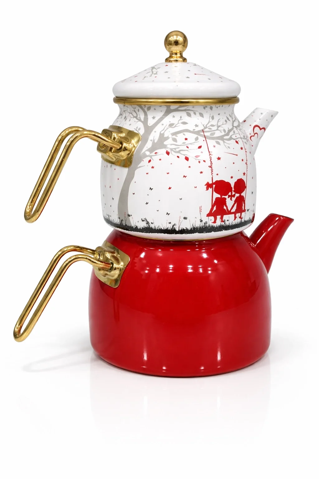 Set İçeriği: Dekorlu Çaydanlık Alt 1 Adet, Dekorlu Çaydanlık Üst 1 Adet, Dekorlu Tepeli Emaye Çaydanlık Kapağı 1 Adet.
