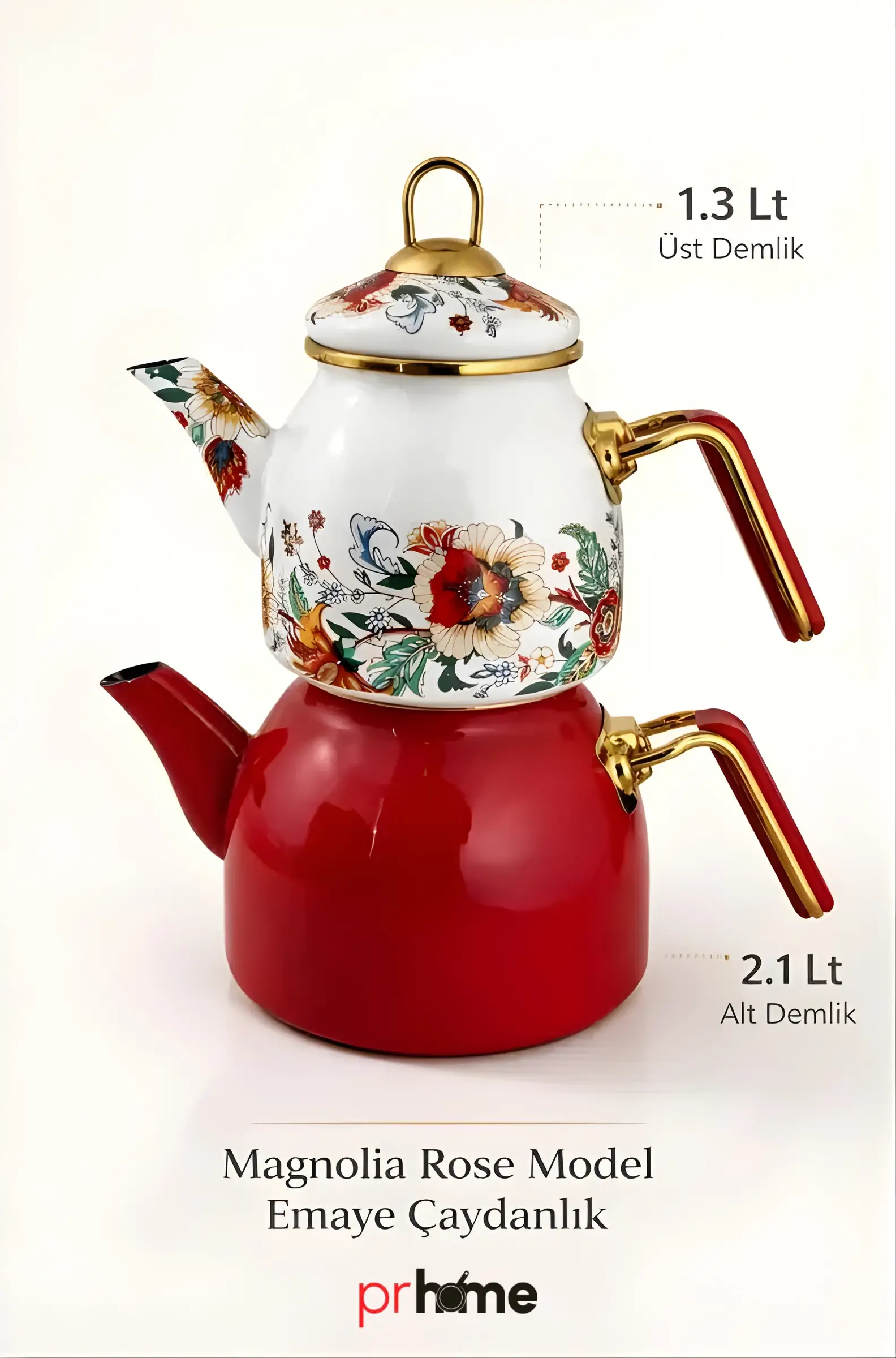 PR Home Magnolia Rose Model Emaye Çaydanlık