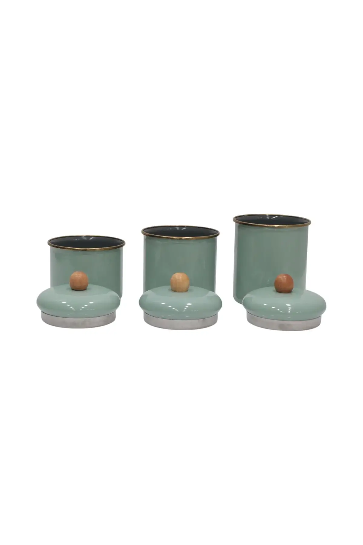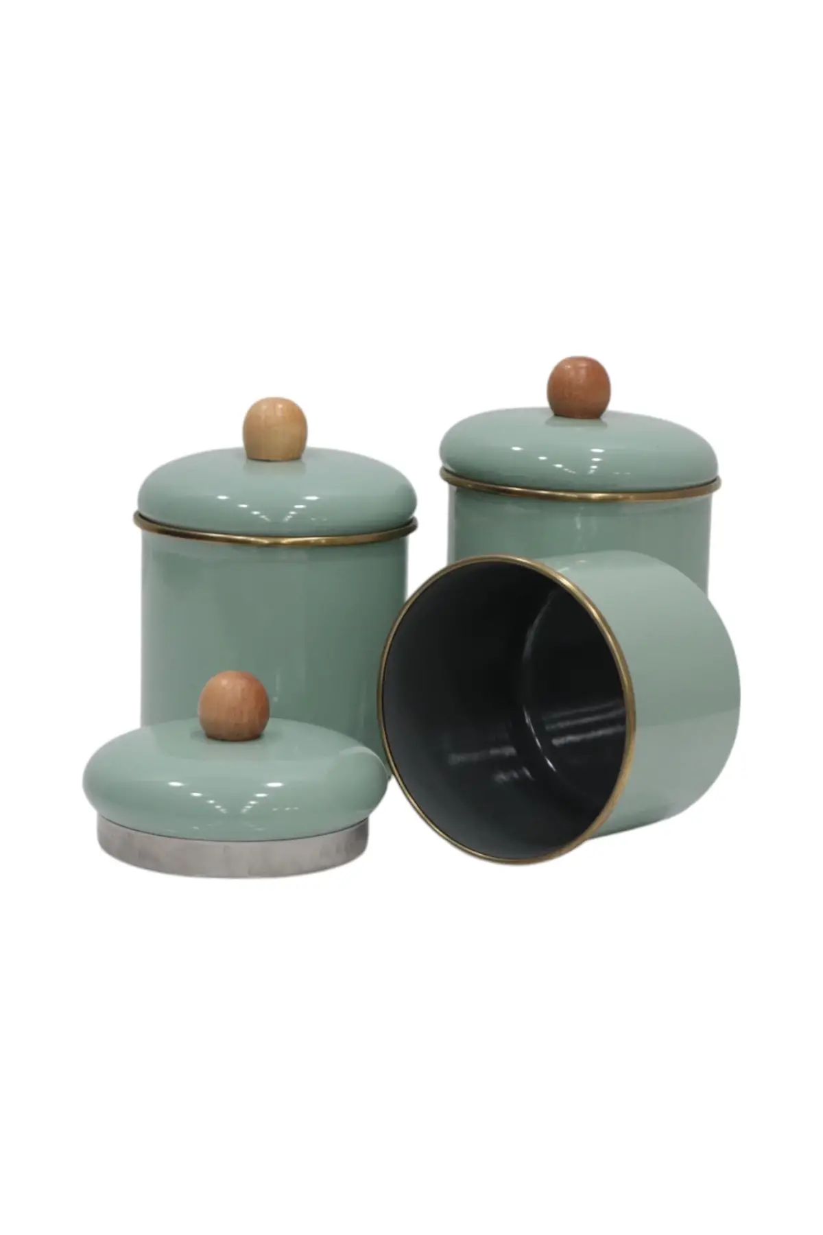 Set İçeriği: Baharatlık 3 Adet, Ahşap Tepeli Emaye Kapak 3 Adet