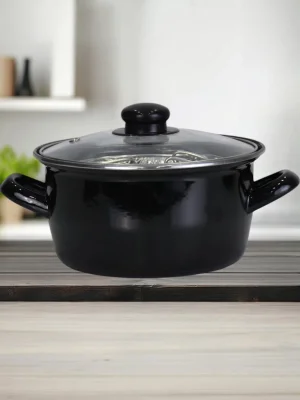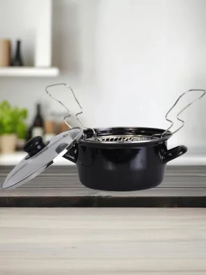 PR Home Emaye Cam Kapaklı Kızartma Tenceresi 18 cm Siyah