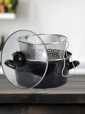 PR Home Emaye Cam Kapaklı Kızartma Tenceresi 22 cm Siyah