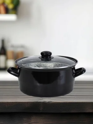 PR Home Emaye Cam Kapaklı Kızartma Tenceresi 20 cm Siyah