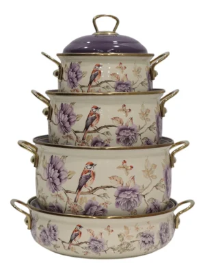 PR Home Fiorella Derin Bombeli Emaye Tencere Seti 16 - 20 -24 - 26 Pilav Tencere Seti