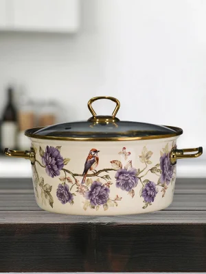 PR Home Fiorella Derin Bombeli Emaye Karnıyarık Pilav Tenceresi 26 cm
